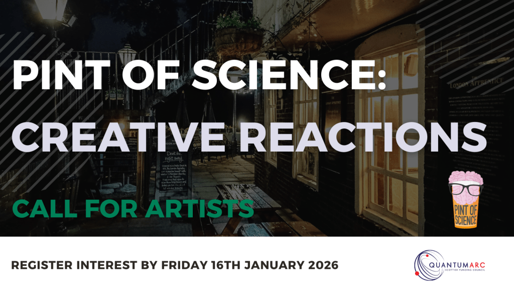 Running from 18th – 20th May across venues in Glasgow’s city centre and the west end, the Quantum ARC is sponsoring the Creative Reactions, where art meets science exhibition. We are calling for artists who are interested in being matched with a scientist to create or showcase an art piece that fits within the theme of creative reactions.