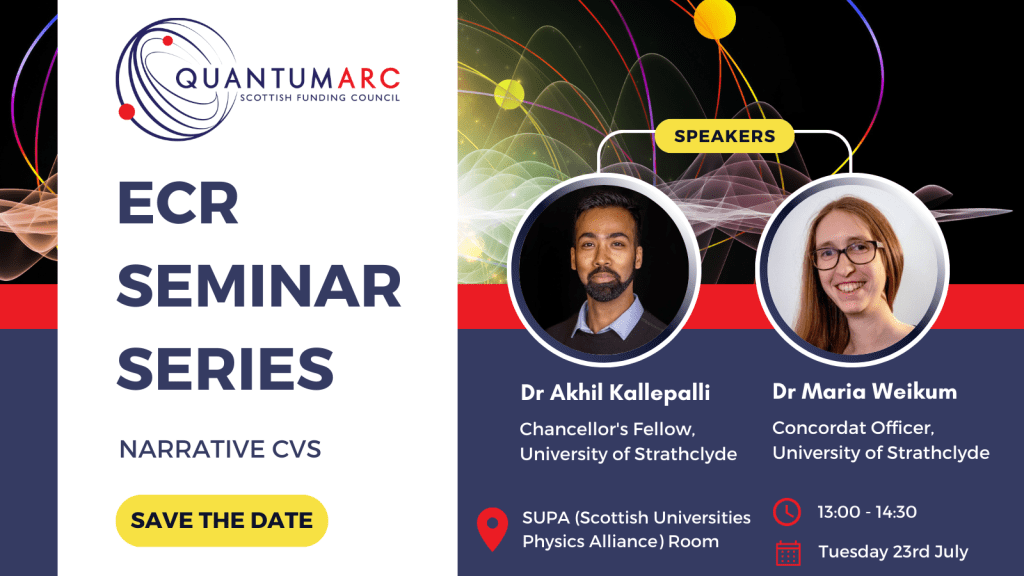 Our seminar series for early career researchers (ECRs) began with an informal event on narrative CVs with Dr Akhil Kallepalli, Chancellor’s Fellow at the University of Strathclyde, and Dr Maria Weikum, Concordat Officer at the University of Strathclyde.