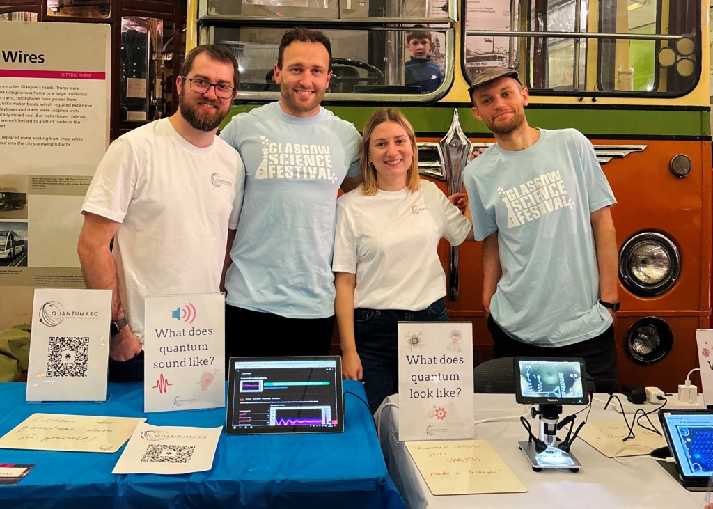 The Quantum ARC team were at this year’s Glasgow Science Festival to share and discuss all things quantum. Visitors were invited to make objects levitate, create and collapse their own quantum states, and see a real quantum computing circuit and hear what quantum systems sound like with researchers from the University of Glasgow.