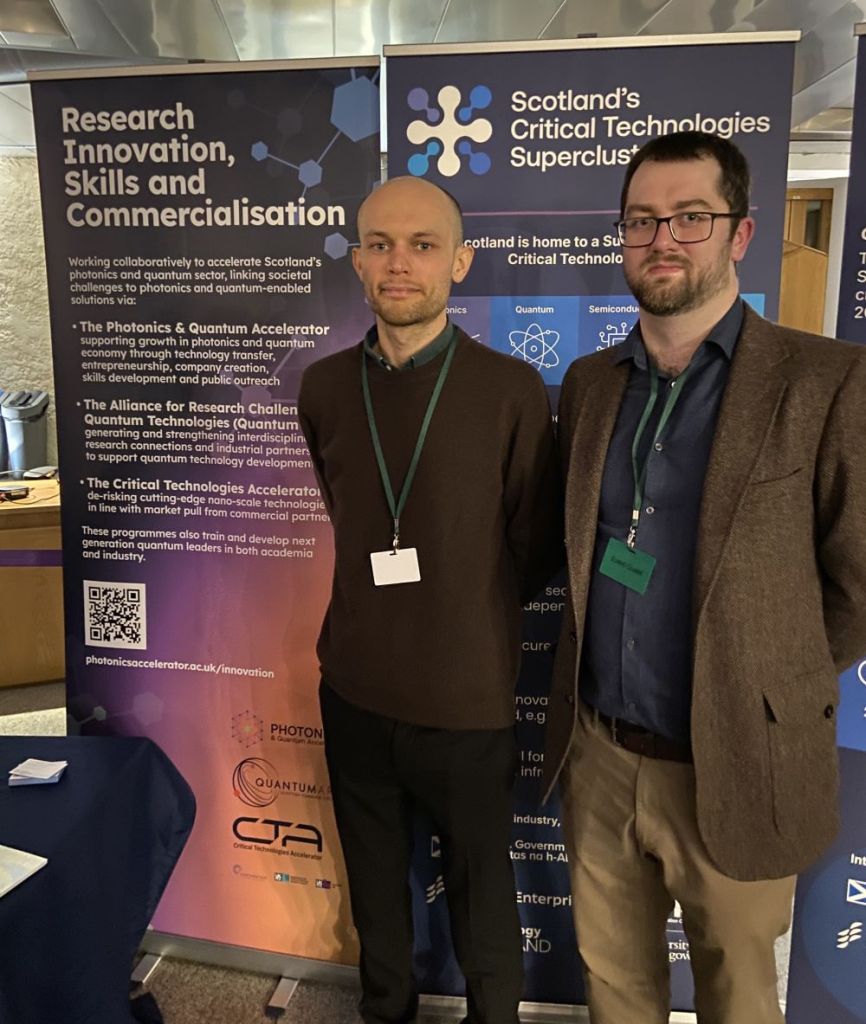 Dr Ash Lyons and Dr Sam Bayliss, Quantum ARC Leads, attended Technology Scotland’s event at Scottish Parliament with over 200 key figures from across industry, academia, and Government to celebrate Scotland’s Critical Technologies Supercluster.