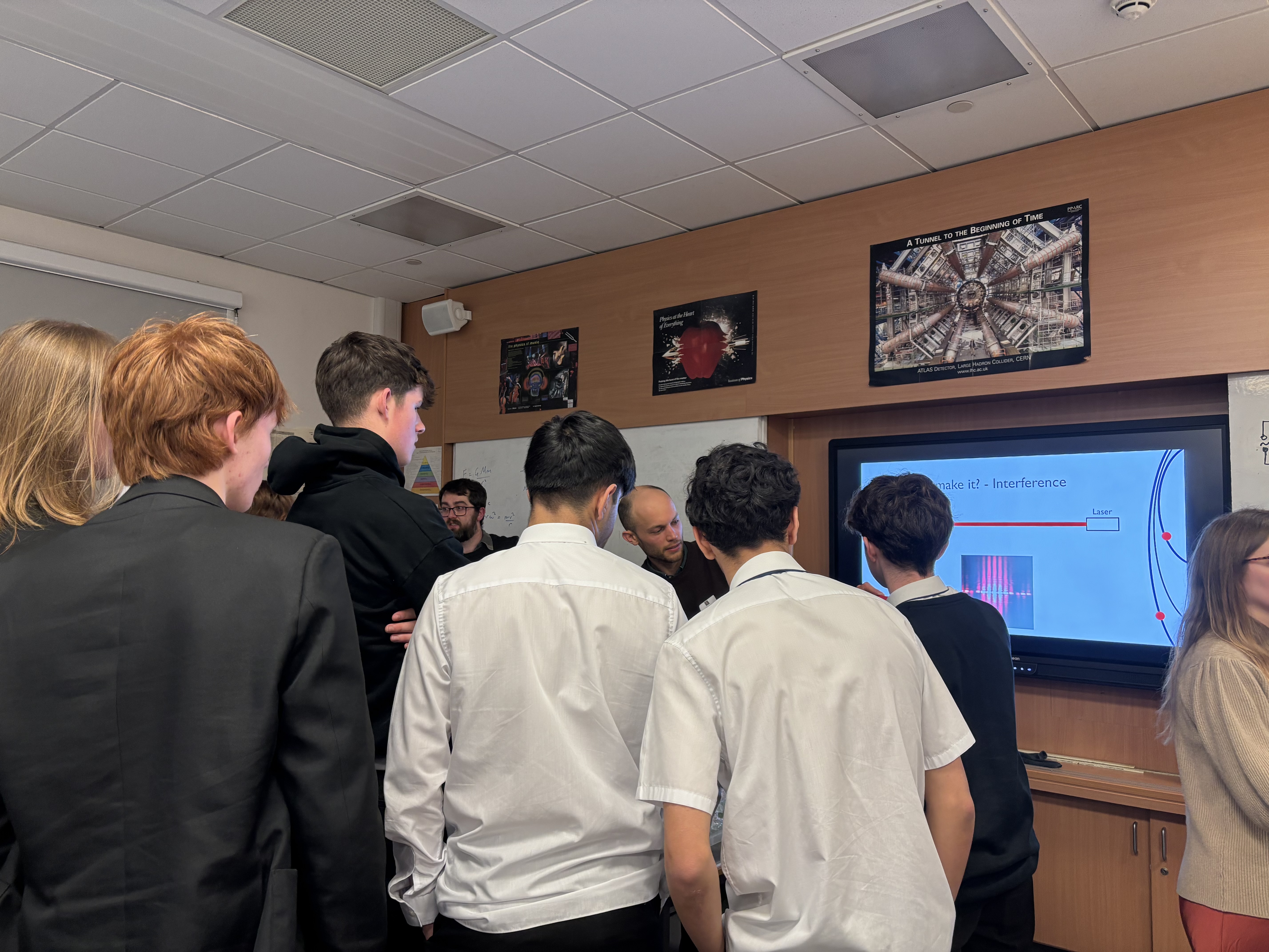 Dr Ashley Lyons, Dr Sam Bayliss, and Dr Emma Pearce spent an afternoon with Advanced Higher Physics pupils at Bearsden Academy to discuss the opportunities available to those pursuing a career in quantum physics. Bringing together two classes of sixth year students imminently applying to university, the session explored the real-world applications of quantum physics and future career possibilities.