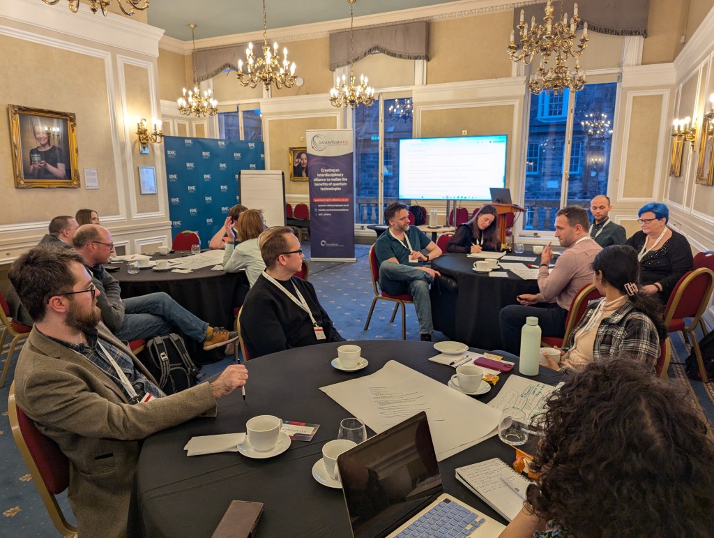 The workshop was followed up 6 months later with a second workshop – some of the same participants, some new – which focused on the ‘rules of engagement’ of finance x quantum collaborations in Scotland.